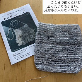 そうなんです。バッグ自体は編めたけど、スマホしか入らない。。。お財布(長財布)が入らない。しかもどうもしっくり来ない。そんなこと、途中でわかるやろ!と思ったんですけど、最初は基本通りにと思いまして・・・でもやっぱり気に入らない。