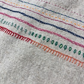 このWSは3回コースでいろいろなステッチワークを1つにまとめるのが目的。前回12月に1回目で、次回は今月23日。おいおい、、、時間ないよーwww