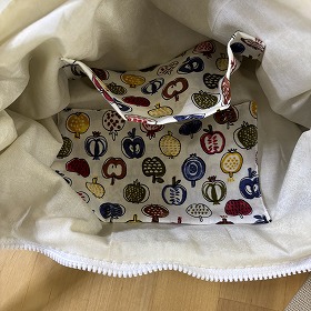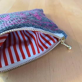 ファスナーには玉っころを付けて開けやすく、内布にはポケットを付けました。