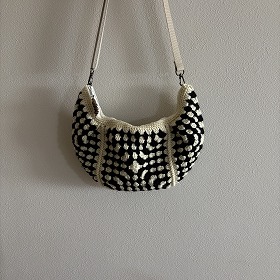 白ベースのグラニースクエアモチーフで簡単バッグを編みました♪ 夏に編んだボディバッグを大きくしてタックをいれました。今はモチーフが流行っているので便乗しました(^^;)