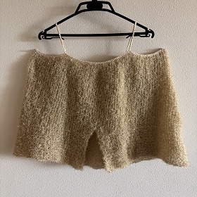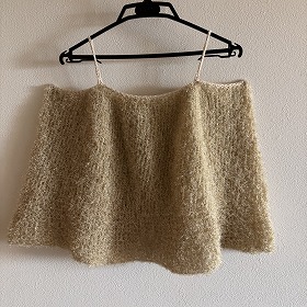 トップダウンで編み進めたから胸元とストラップの目数修正に手間取りましたが、着地点を見つけて結果オーライとなりました。よかったよかった(^^)