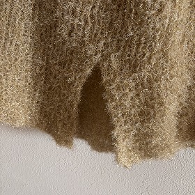 胸元から輪にしてグルグルとメリヤス編みをしたところ、斜行してるのがわかり、急遽ガータ編みで往復編みしました。このスリットが良い感じになりました。