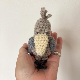 めっちゃ可愛い~♪ ハシビロコウが好きなわけではないけれど、このフォルム、ドンピシャでした♪ 大きさも手ごろで存在感もある。素晴らしい作品だと思いました! みなさんもぜひ編んでみてくださいね☆